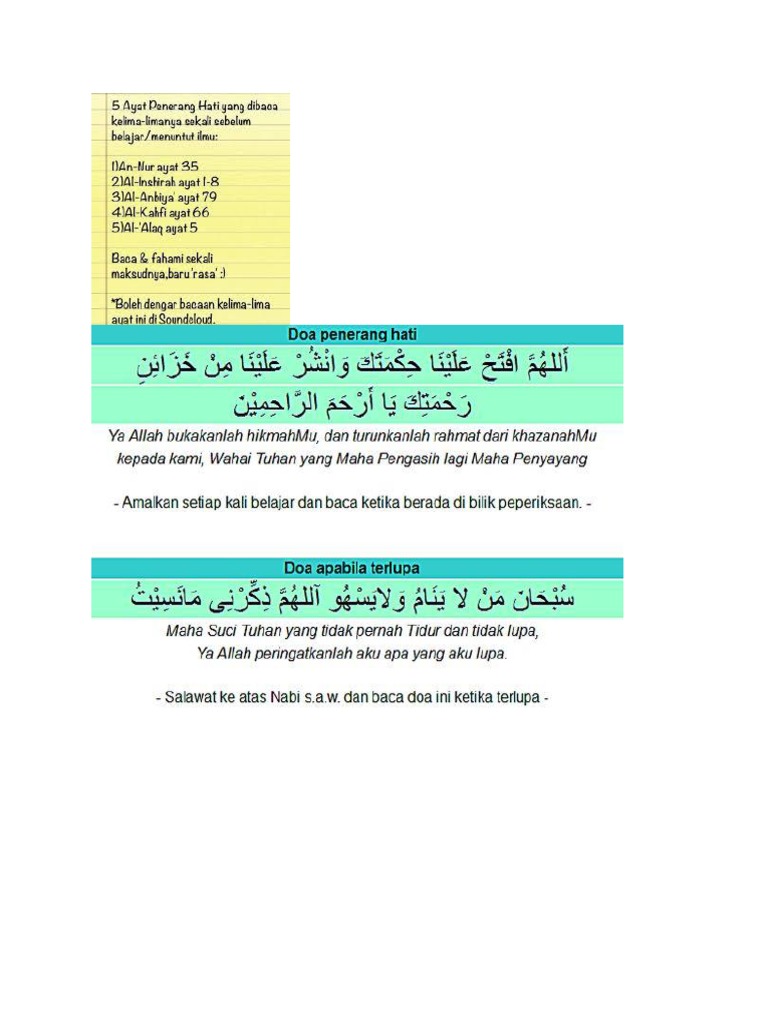 Ya Allah aku pertaruhkan kepadaMu atas apa yang telah kau ajarkan kepadaku maka kembalikanlah ia jika aku memerlukannya janganlah Engkau membuat aku melupakannya wahai Tuhan. DOA MOHON NUR PENERANG HATI BERBAGAI AMALAN HABAIB I REALLY LIKE THIS LINK. Doa belajar 5 kuat ingatan Allahumma inni astaudiuka ma alimtanih.