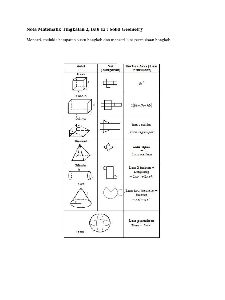 Nota Matematik Tingkatan 2 Bab 12 Solid Geometry Chegu Zam